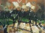 2016Ik werk graag op allerlei kosteloos materiaal, het beukenbos is op een stuk karton geschilderd afkomstig van een doos. Het bruine materiaal is direct een prima ondergrond. Geïnspireerd door Désiré Louette, kunstschilder uit Ferrières- België heb ik dit beukenbos geschilderd.